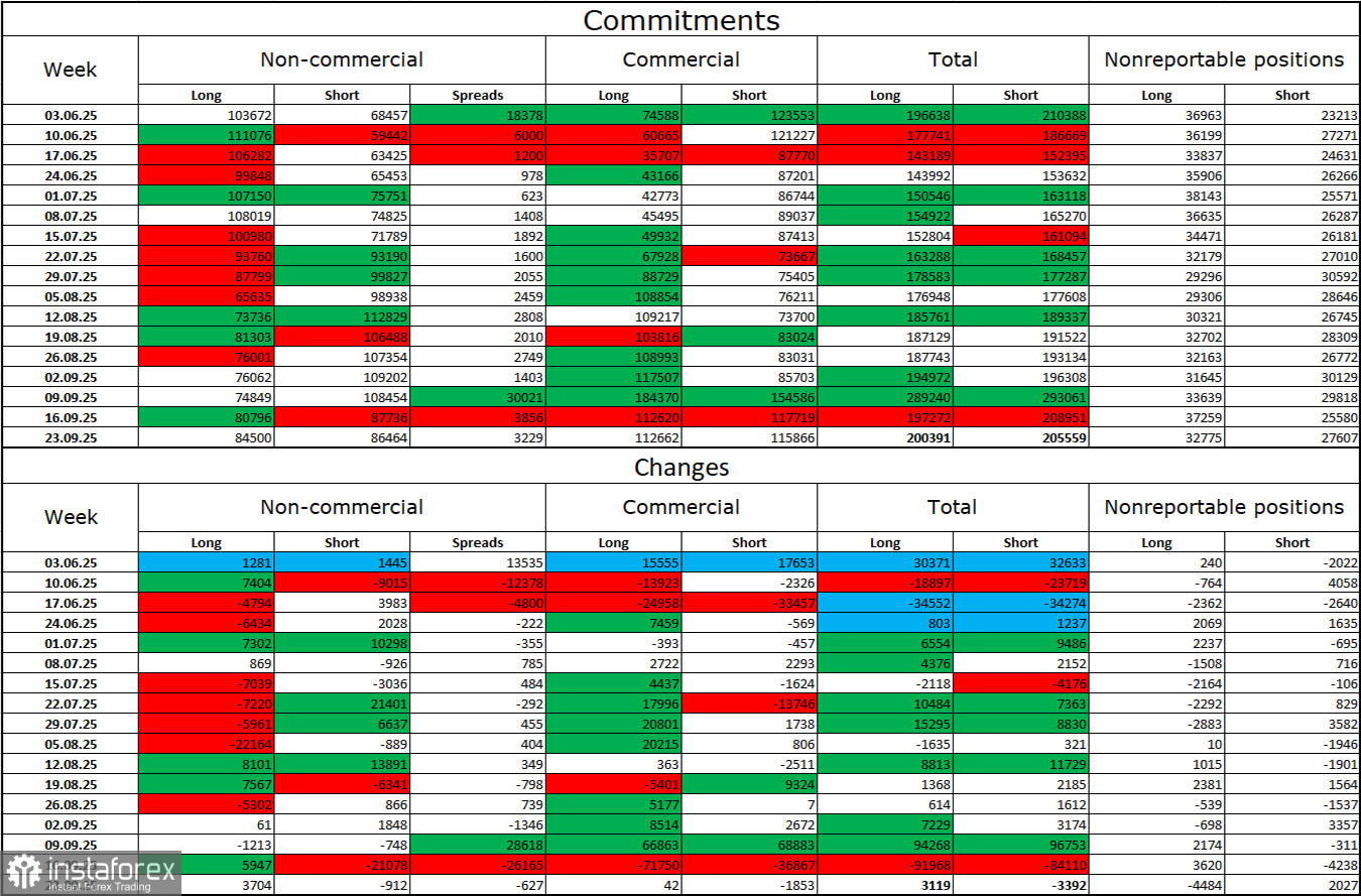Sentimentul în rândul categoriei Non-commercial a devenit mai optimist în cea mai recentă săptămână de raportare — deși aceste date sunt deja vechi de o lună. Numărul de poziții lungi deținute de speculatori a crescut cu 3.704, în timp ce pozițiile scurte au scăzut cu 912. Diferența actuală dintre pozițiile lungi și cele scurte este de aproximativ 85.000 față de 86.000, ceea ce înseamnă că traderii optimiști înclină din nou puțin balanța în favoarea lor.
