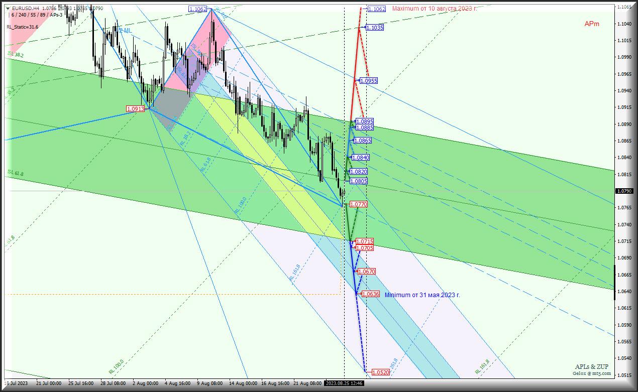 Основные технические уровни для торговли Euro vs US Dollar - h4 - и обзор вариантов развития движения этой валютной пары с 28 августа 2023 г.