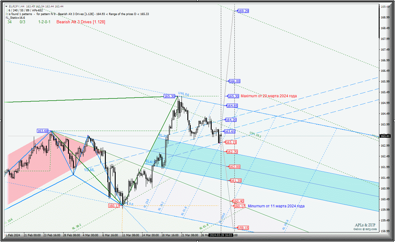 EUR/JPY - h4 - обзор вариантов развития движения данного валютного инструмента с 29 марта 2024 г.