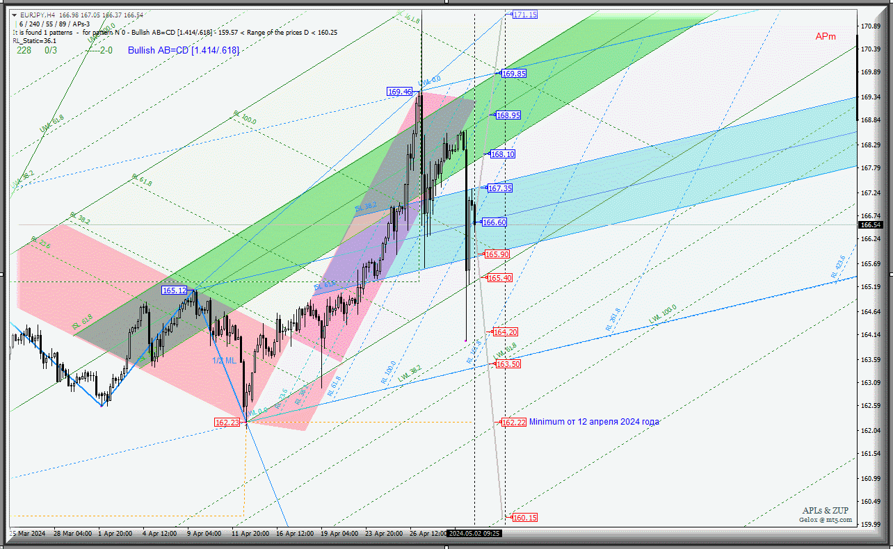 Euro vs Japanese Yen - пара готовится к снижению? Комплексный анализ (с анимационной разметкой) APLs & ZUP со 2 мая 2024