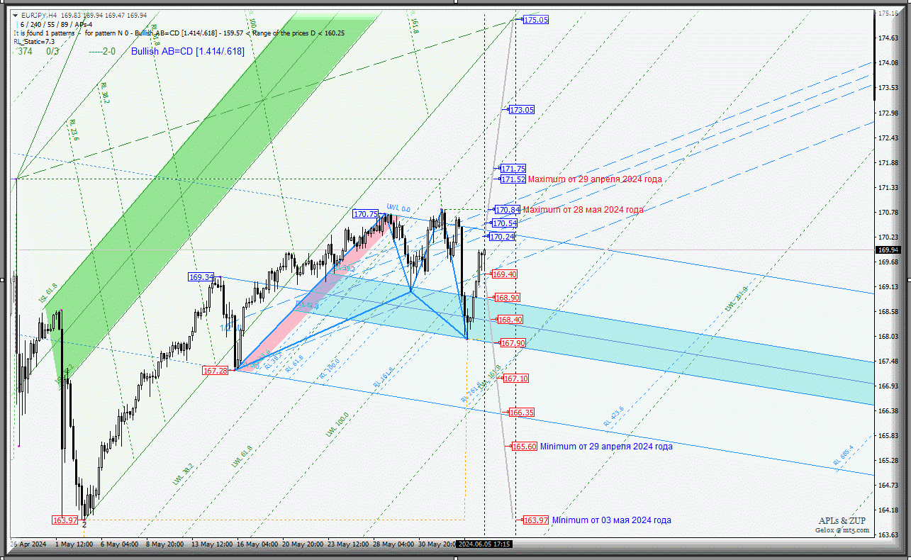 EUR/JPY - h4 - обзор вариантов развития движения данного валютного инструмента с 06 июня 2024 г.
